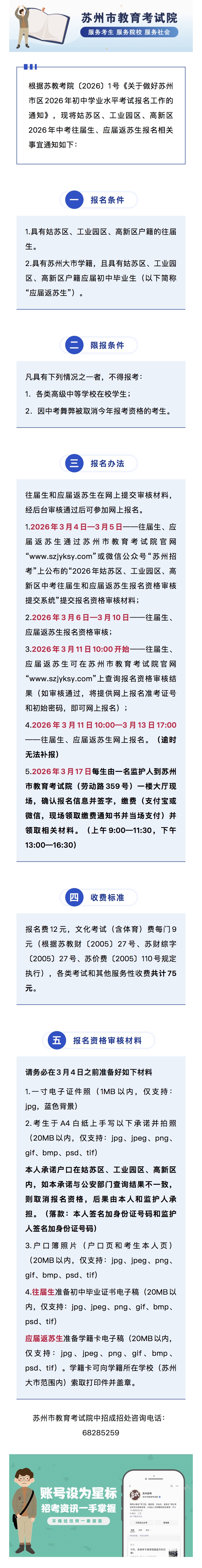 姑苏区、工业园区、高新区2026年中考往届生、应届返苏生报名通告