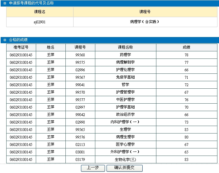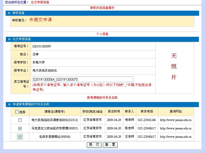 选择申报论文的课程,在【报考课程的代号及名称】中,列出该考生报考院校和专业下的所有论文课程计划,可选择一门或多门,点击【提交】即可,提交后考生可进行修改。