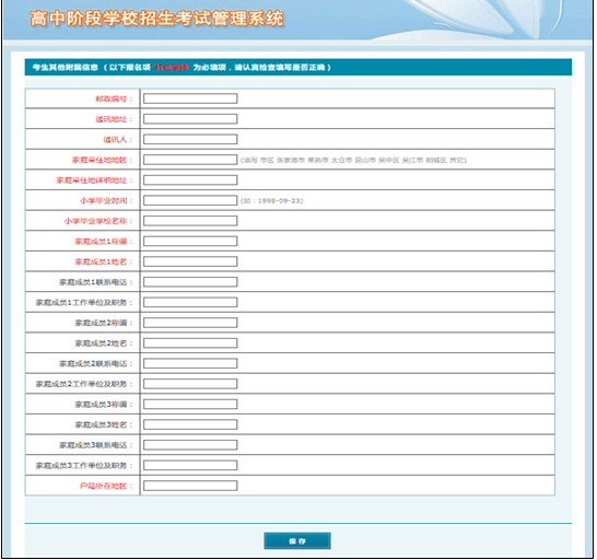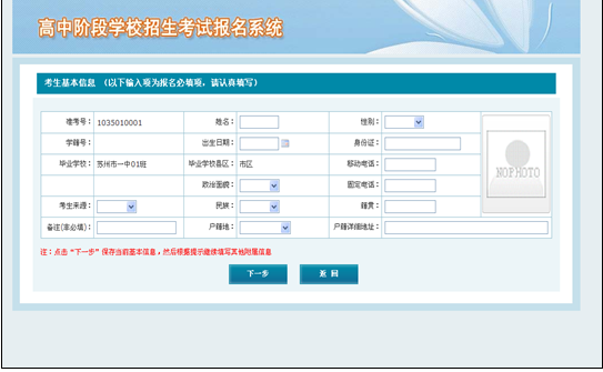 考生成功登录系统,就进入中考报名信息输入界面。中考报名系统分两屏输入(见图3和图4),考生必须完整、准确地输入信息。