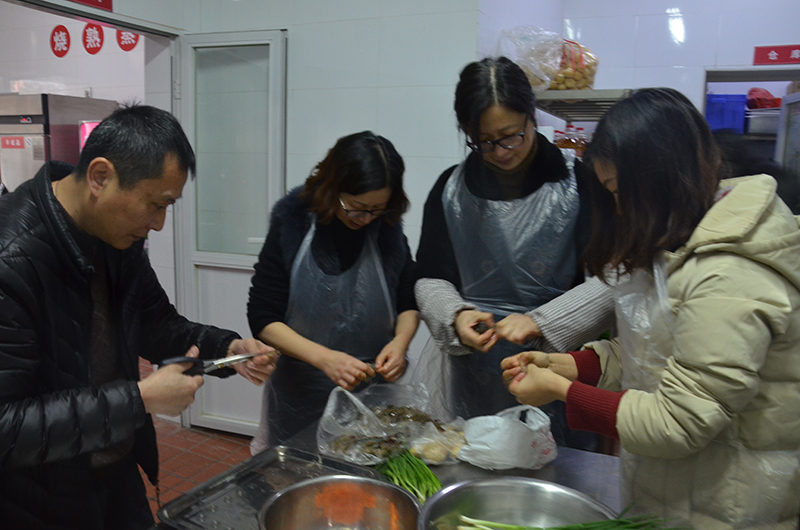 在大家的热情支持下,2018年1月24日的腊八盛宴圆满结束,后服的五件子高汤,巫老师的糟豆芽和醋白菜,郭老师的鲜虾饼,支老师的香菇塞肉,吴老师的辣炒花蛤,张院的广式蒸鱼,还有大厨代工的咕咾肉和炒青菜,都美味之极。现在,奉上厨艺大赛花絮,请大家慢慢品赏。
