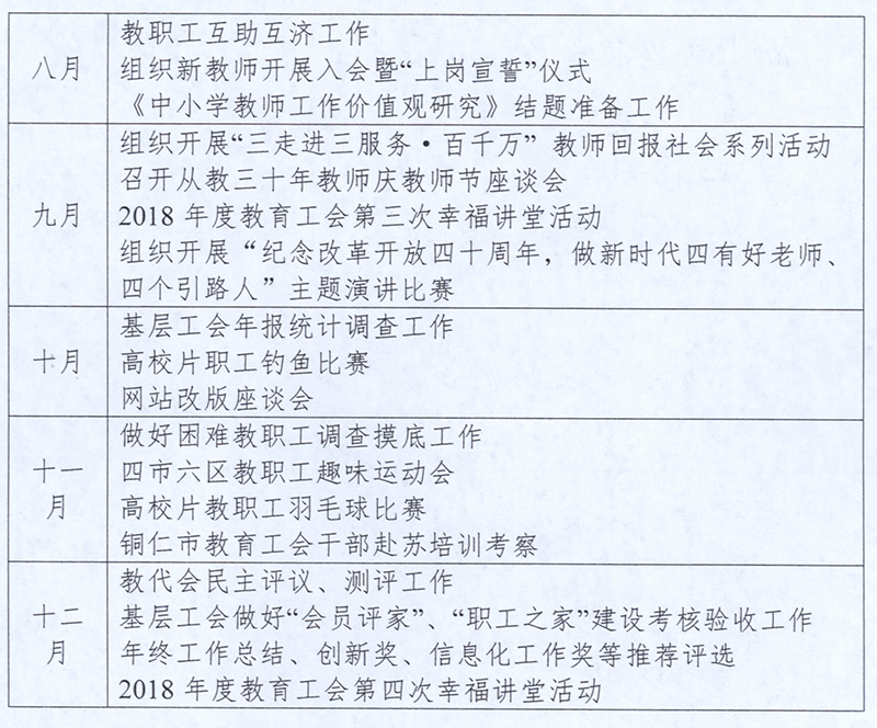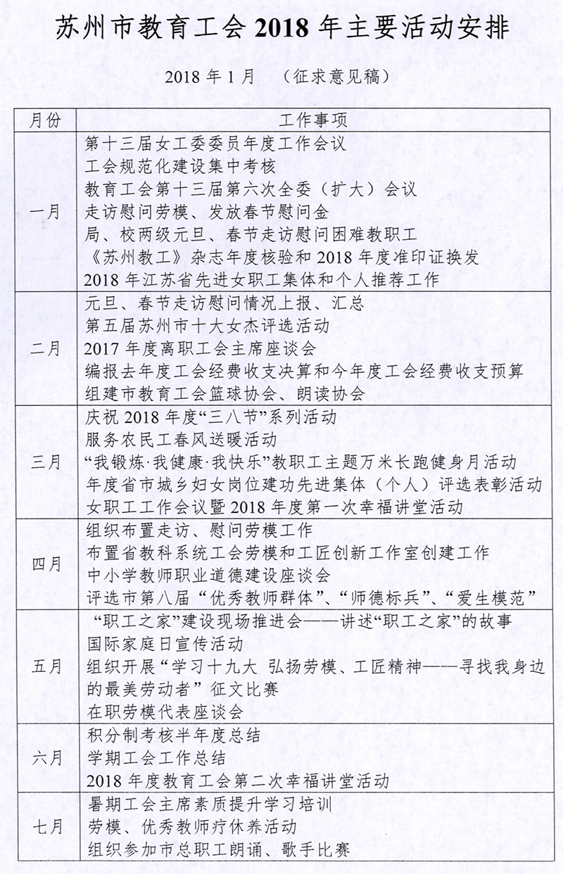 苏州市教育工会2018年主要活动安排(征求意见稿)