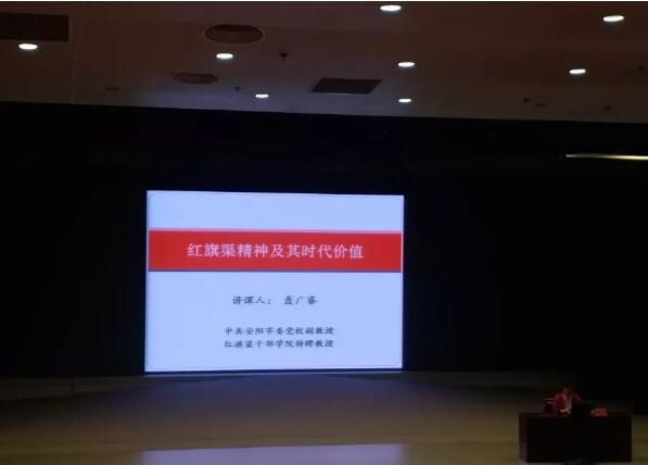 11月18日下午,红旗渠干部学院聂广睿副教授为大家带来了一场《红旗渠精神及其时代价值》的讲座,详细解读了红旗渠精神内涵和新时代价值体现。