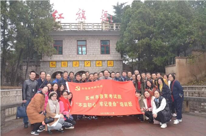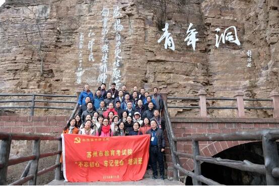为深入贯彻落实党的十九大精神,集中学习习近平新时代中国特色社会主义思想,推动思想再解放、改革再深入、工作再抓实;同时,进一步加强我市教育考试队伍建设和人才培养,进一步提升教育考试管理人员政治素质和职业素养,不断激发教育考试工作人员的积极性、主动性和创造性,2018年11月16至19日,在苏州教育考试院支部书记熊伟同志的带领下,我市招考系统39名党员同志和业务骨干赴河南省林州市红旗渠开展以“不忘初心 牢记使命”为主题的党日活动。