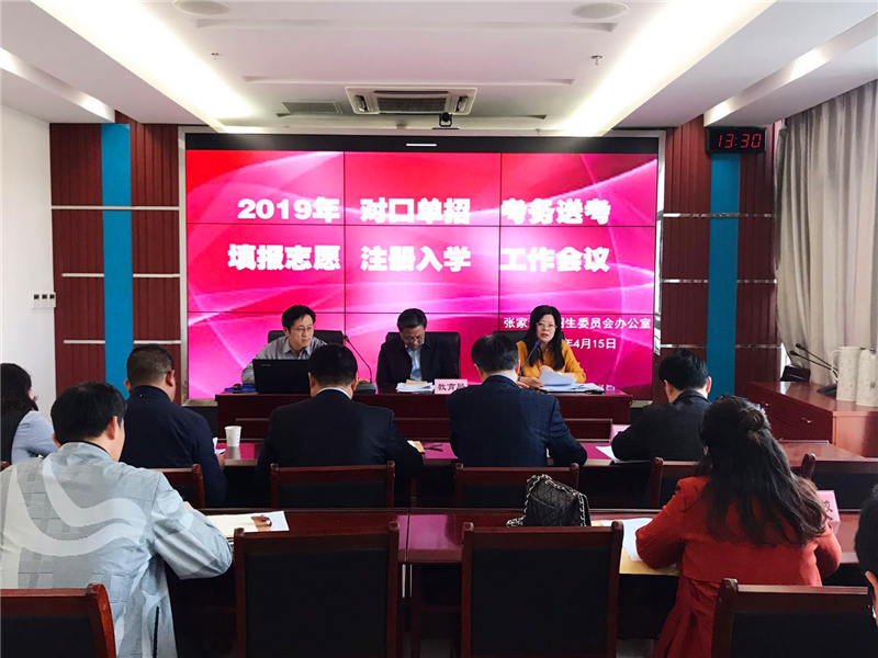 4月15日下午,在张家港市招生办召开了2019年普通高校对口单招考务、送考、填报志愿与注册入学工作会议。会议由市招生办周主任主持,姚老师对考试考务工作、送考工作、志愿填报工作、注册入学工作、体检工作等做了详细的安排和部署。市教育局王柳军副局长与考点学校、送考学校签订安全责任状并作重要讲话。