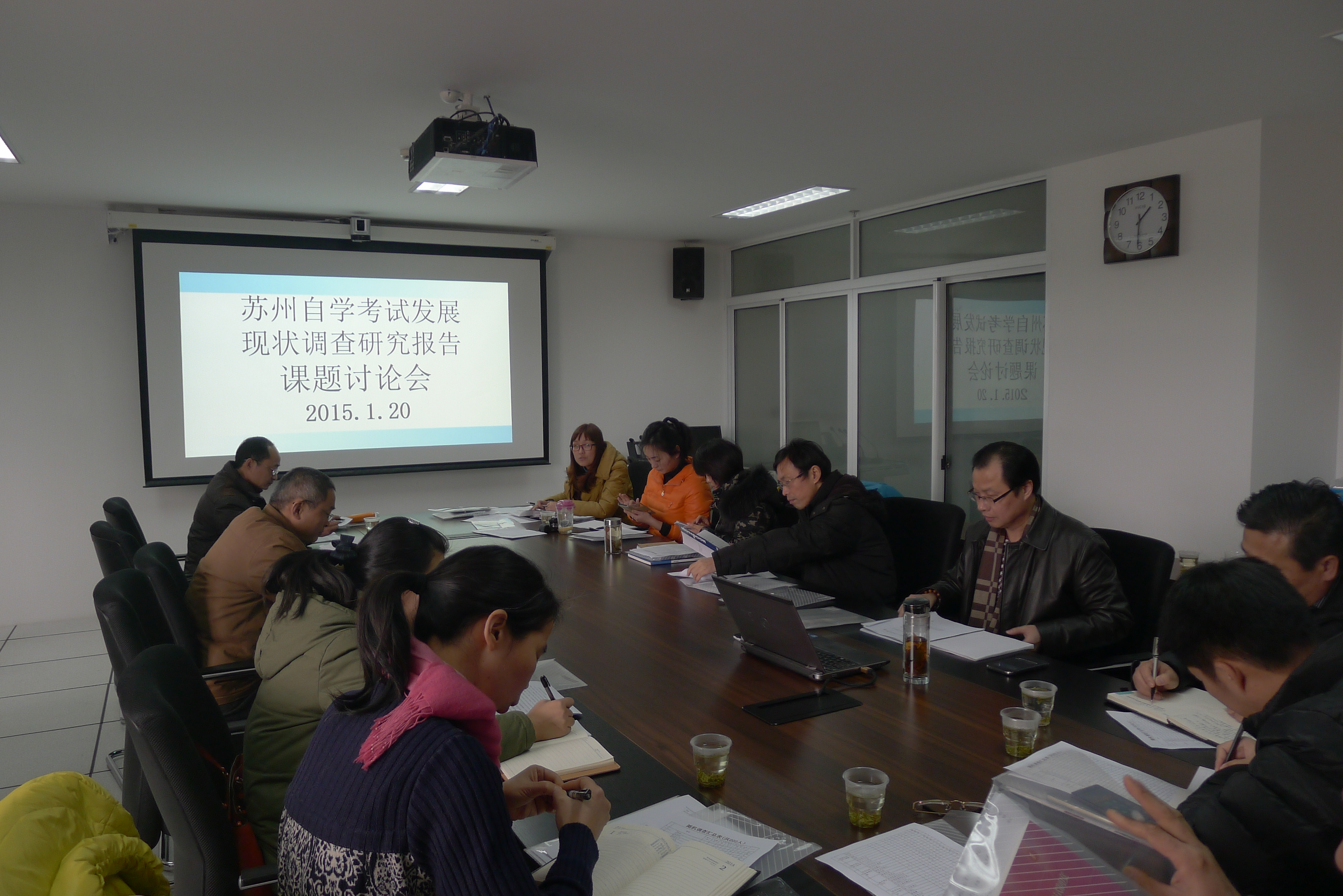 苏州市教育考试院“苏州自学考试发展现状调查研究报告课题”第四次研讨会日前在太仓举行,结合前一阶段进行的自学考试基本情况的调查摸底、自考数据信息的采集等工作,各子课题小组分别汇报了各自所承担的工作情况,认真听取了专家组各位专家的意见,研讨会上课题组成员在充分交流讨论的基础上,在课题的切入点、数据的采集、采用以及相应的建议等问题上初步达成共识,并为下一步的工作提出了目标和要求,目前该项科研活动进展顺利。