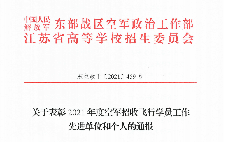 我院两名党员荣获2021年空军招收飞行员工作“先进个人”称号