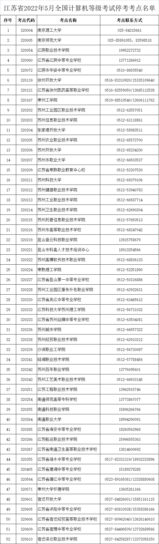 关于江苏省2022年5月全国计算机等级考试部分考点停考的公告