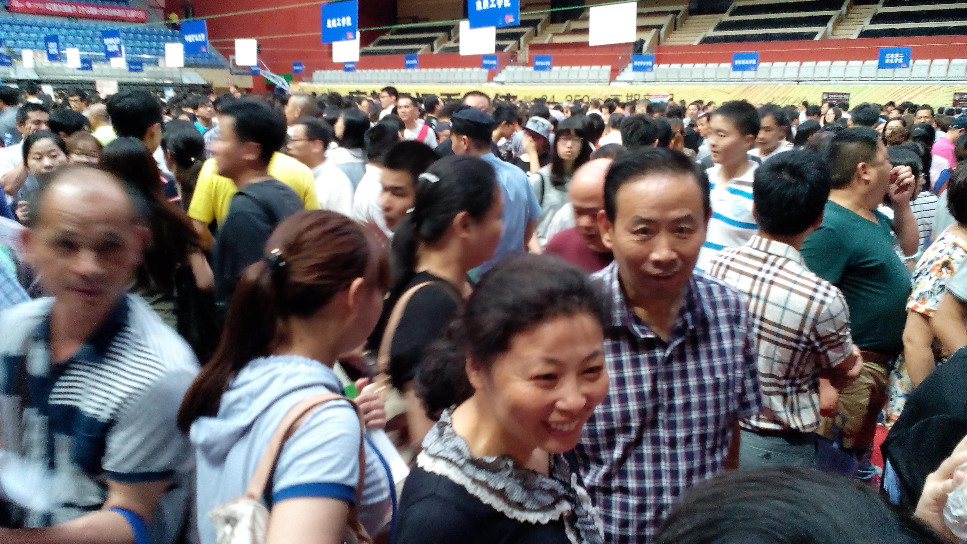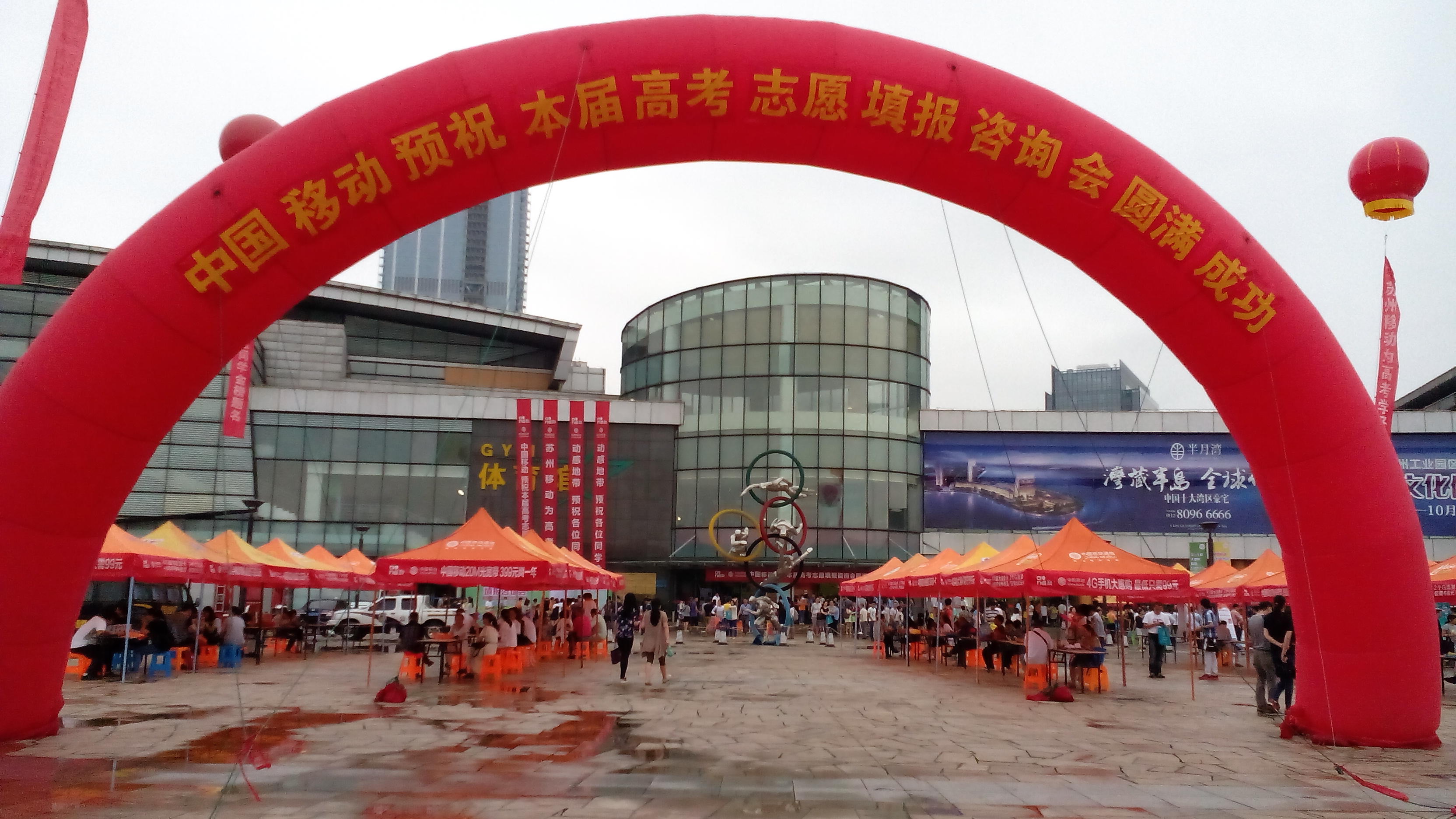 6月27日苏州教育考试院与园区独墅湖科教创新区管委会在独墅湖体育馆联合举办高考志愿填报咨询会,咨询会当日全国一百多所高校进驻场地设摊招生咨询,为家长和考生答疑解惑,其中很多高校还是第一次来苏州招揽生源。从现场咨询情况看,大部分考生和家长还是青睐省内的大学以及苏州本地的高校,今年进场的高校层次多样,类型丰富,既有综合性、研究性大学,又有专业型、教学型高校,数量上也比往年增加了很多,省内高校几乎无一缺席,咨询会现场二楼全部是省内高校集中设摊,成为最拥挤的地方。大约一万多考生和家长参加了咨询会。