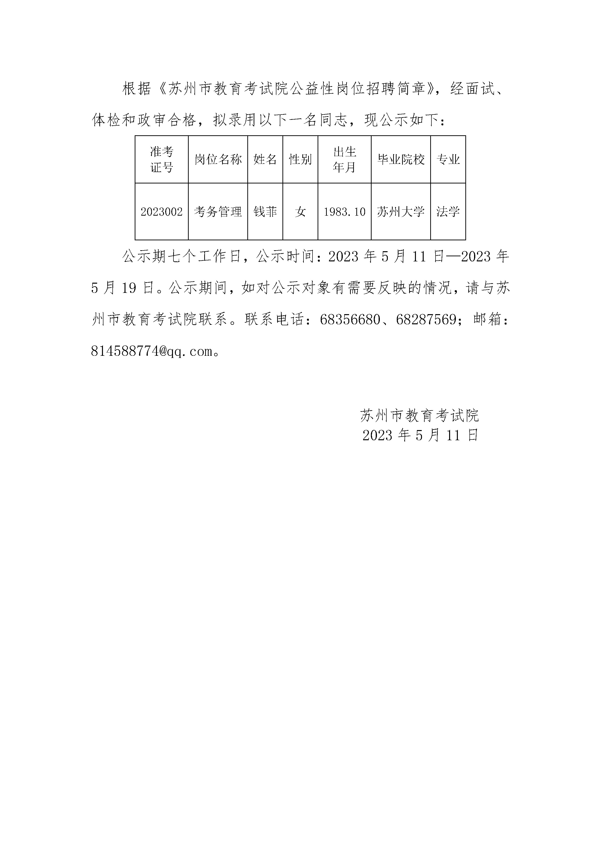 苏州市教育考试院招聘公益性岗位面试及总成绩公示