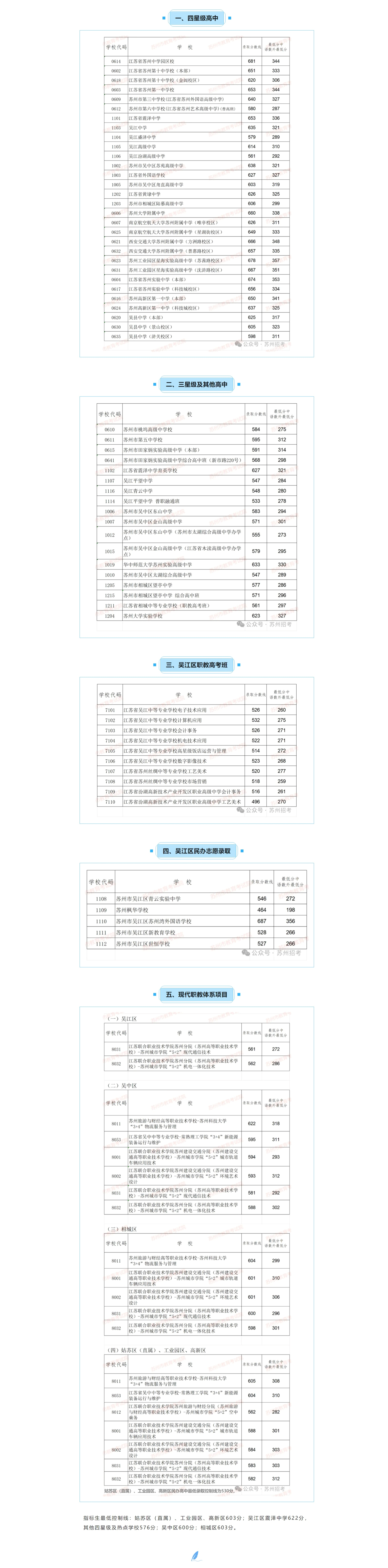 2024年苏州市六区第一批次普通高中学校及现代职教体系项目录取分数线