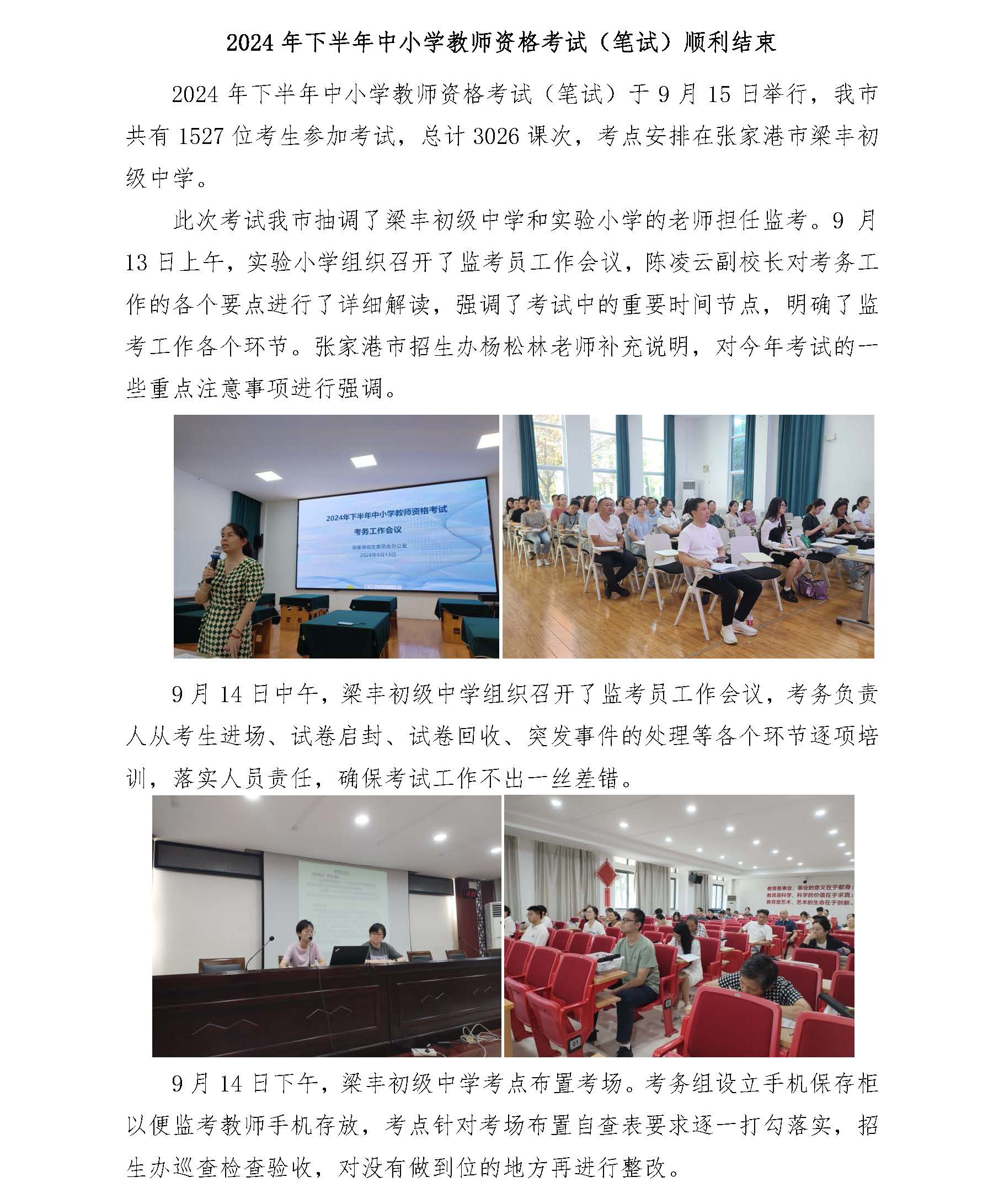2024年下半年中小学教师资格考试(笔试)顺利结束