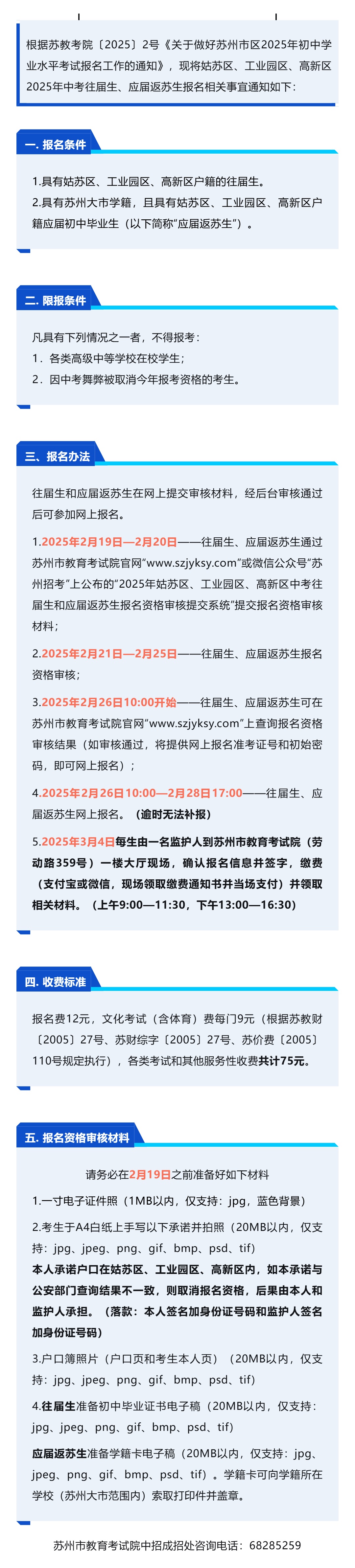 姑苏区、工业园区、高新区2025年中考 往届生、应届返苏生报名通告