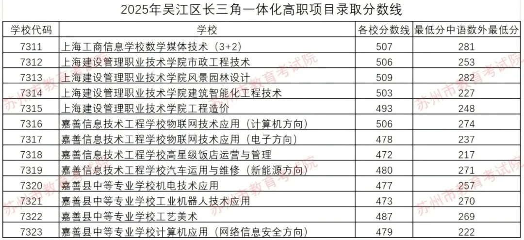 2025年吴江区长三角一体化高职项目录取分数线