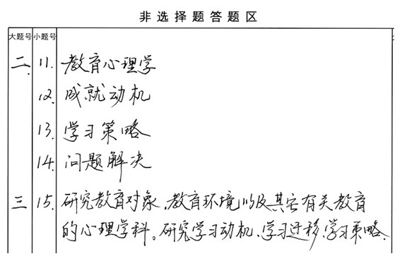 5、非选择题作答:应分别在“大题号区”、“小题号区”注明相应题号。大题号用大写数字填写,如:一、二、三等,小题号用阿拉伯数字填写,如:31、32、33等。