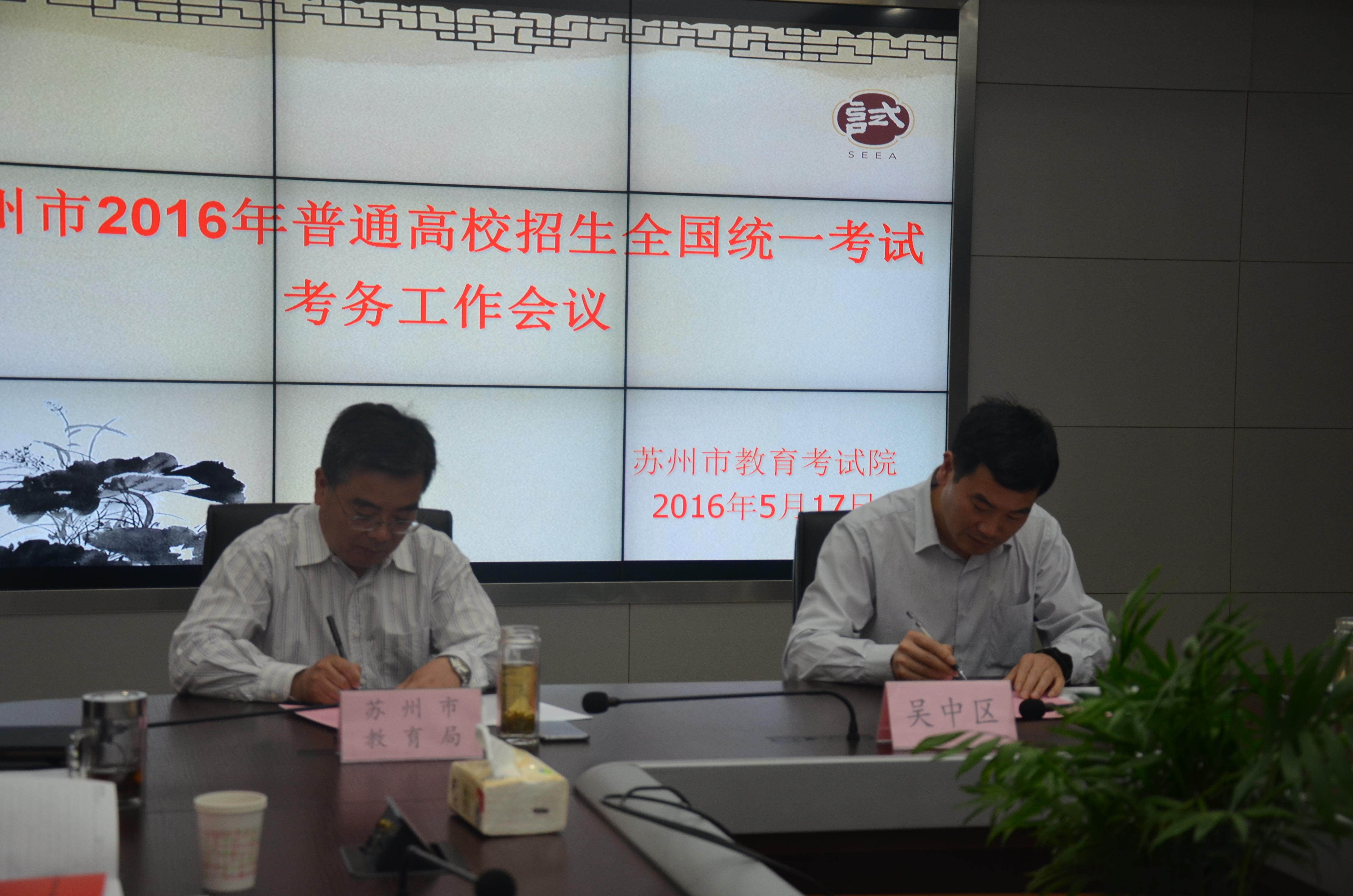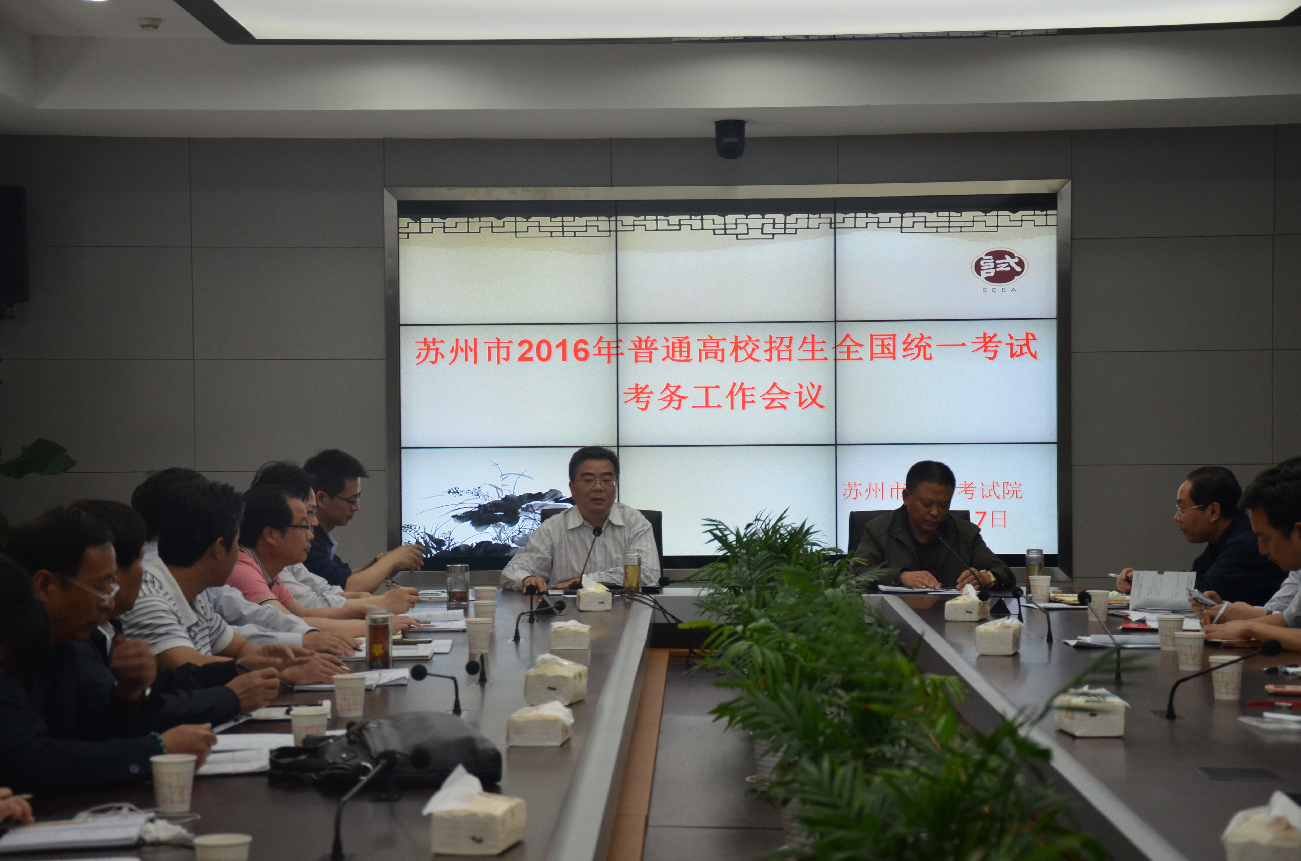 5月17日、18日,苏州市教育考试院分别召开2016年高考各市(区)招办、考点主任考务工作会议,布置落实今年高考各项任务。会议由院长苏惠平主持。