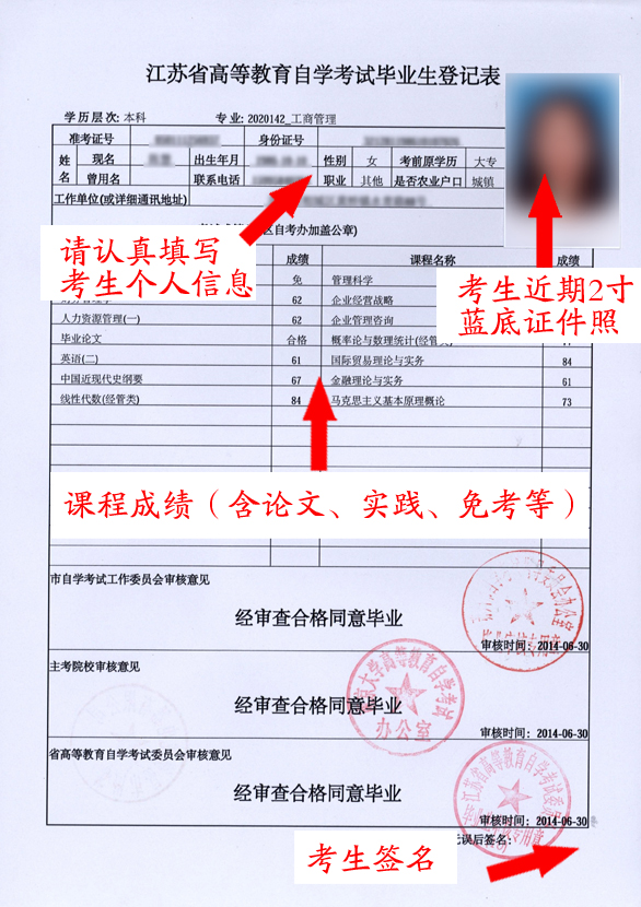 等待1-2天,进入江苏自考网上系统,在【审核信息】一栏查看审核意见,通过审核的考生请按照回复信息带齐材料到苏州教育考试院(劳动路359号)办理毕业登记手续。